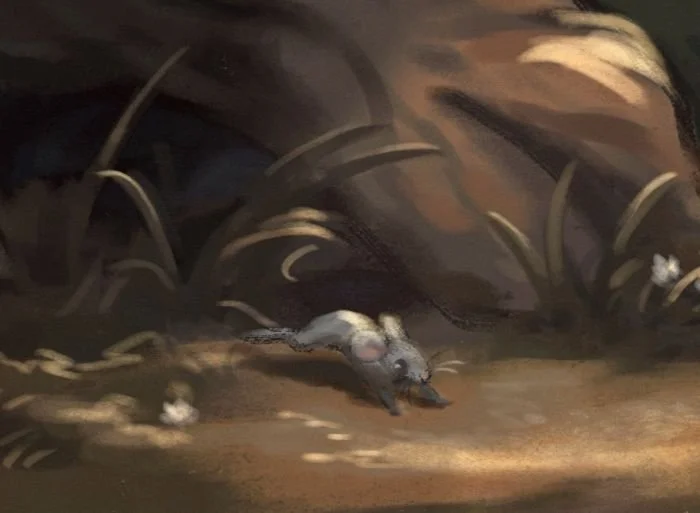 I was quite disciplined with my approach to this piece, and I really enjoyed applying all of the things I had been practicing in the studies beforehand. Once I had the story in mind, I started with some pencil sketches to try different compositions for different scenes. Then, I got my iPad out and made greyscale thumbnails in Procreate.